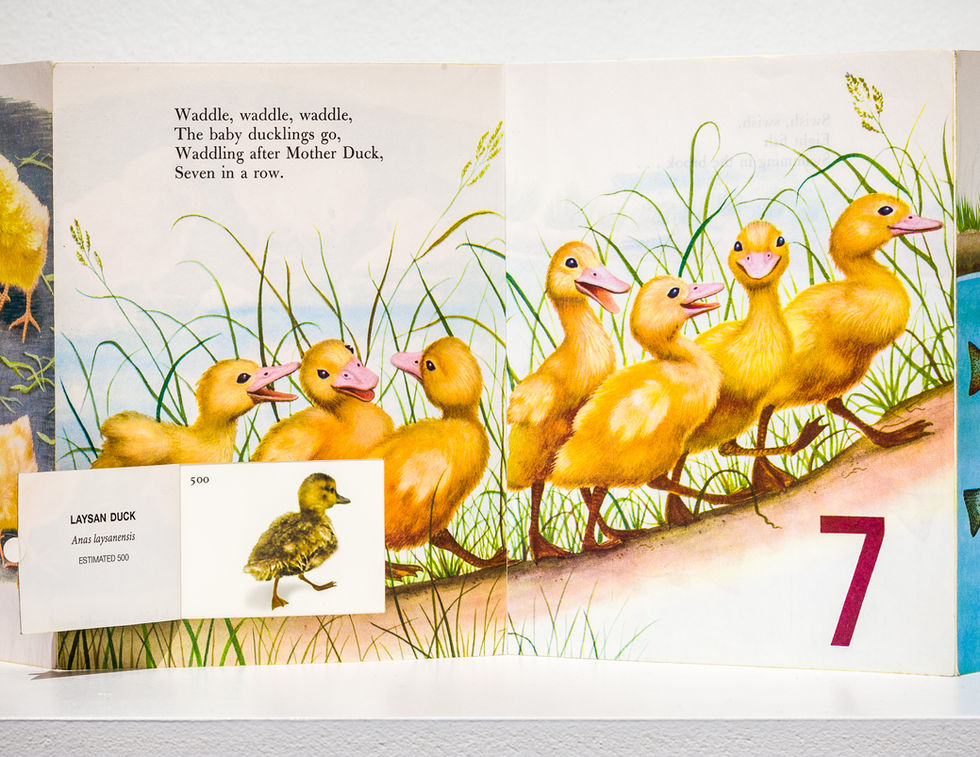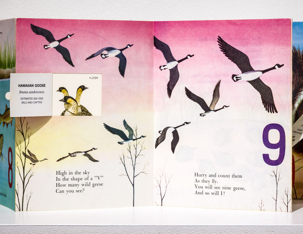 The original Little Golden Book, My First Counting Book, has been reconstructed from a codex format to an accordion format. Each of the ten baby animals in the book has a lift-up flap that features a related endangered species with the number of creatures left remaining in the wild.